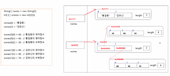 자료형[][] 변수명 = new 자료형[크기][크기];
