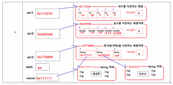 // int[] arr1 -> arr1은 정수를 여러 개 저장하는 배열 객체의 주소값을 담을 수 있는 변수다.