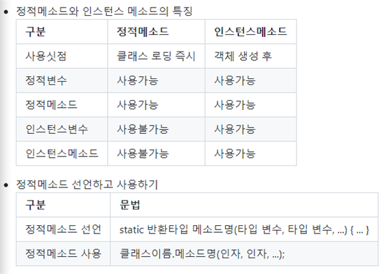 멤버 메소드의 블록에서는 멤버변수, 클래스변수, 멤버메소드, 정적메소드 모두 사용가능!