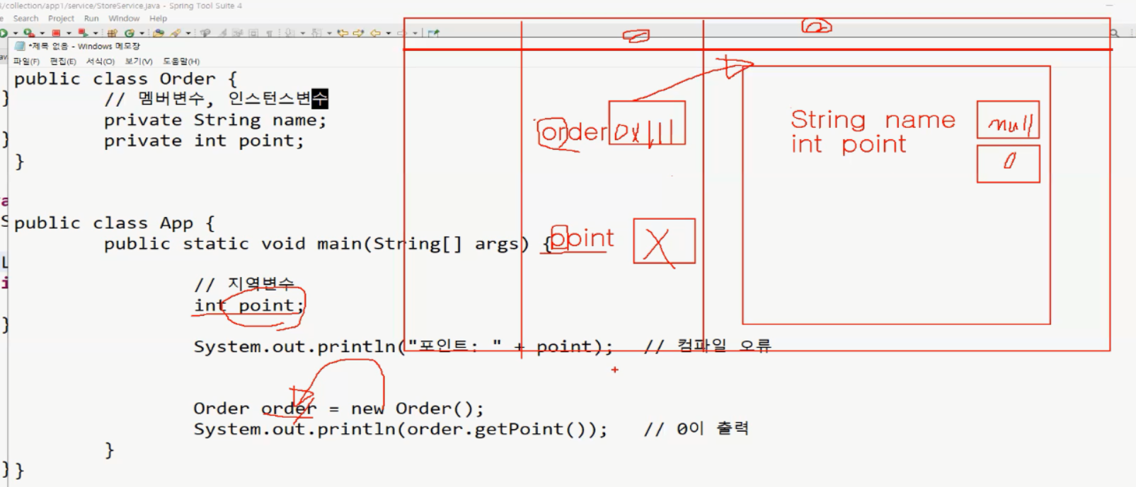 지역변수는 객체 안에 만들어지는 게 아니라 초기화를 안하면 쓰레기값이 들어있다.