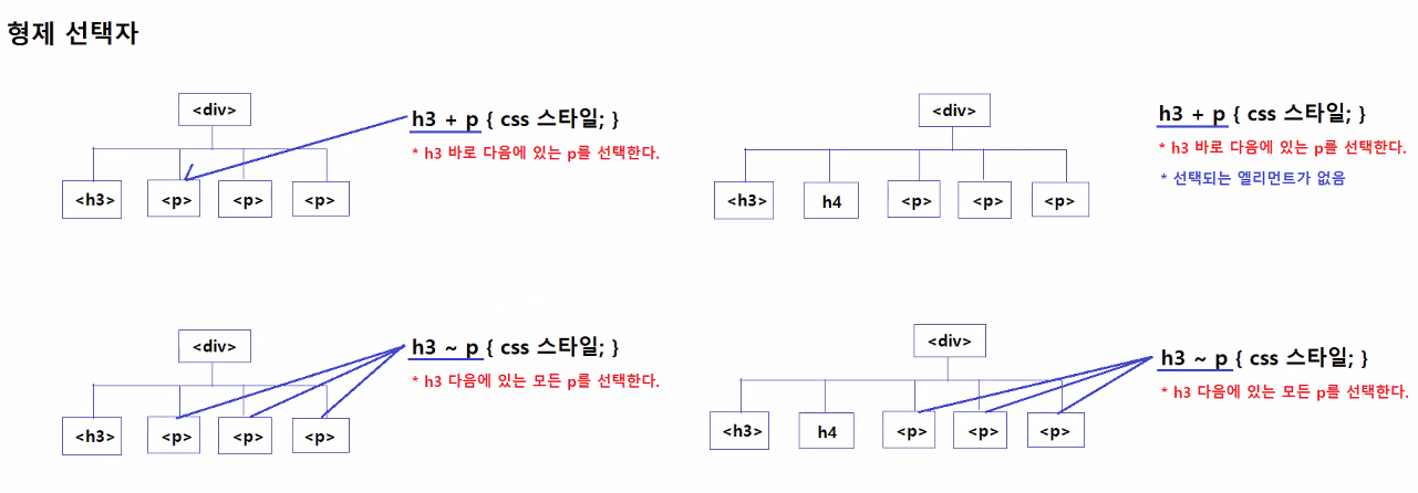 => 1~2번 자손선택자, 3~7번 자식선택자, 8~9번 형제선택자