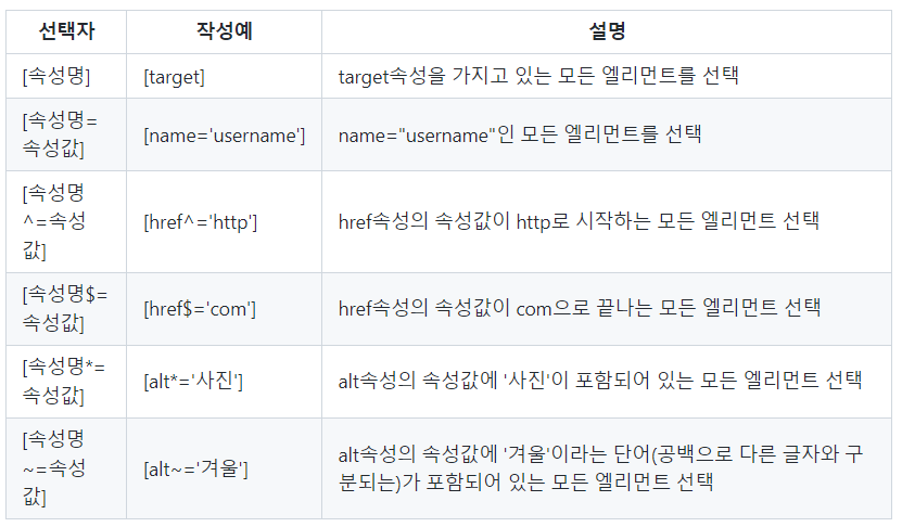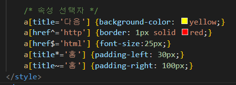 - HTML문서에서 스타일을 적용할 대상을 선택할 때 사용한다.