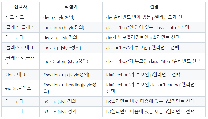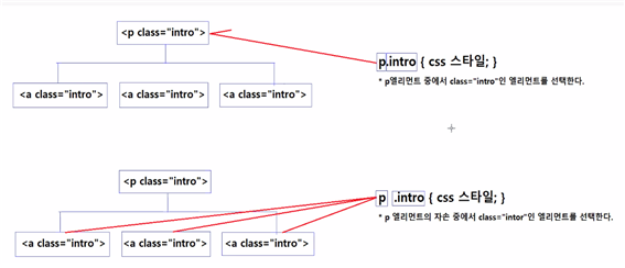 => 선택자 사이에 공백이 있으면 자손선택자이다.