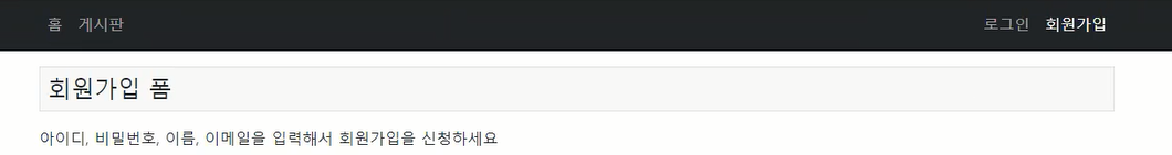 화면이 있는 (html코드가 있는) 모든 jsp파일에 아래 코드를 붙인다.<nav class="navbar navbar-expand-sm bg-dark navbar-dark"><div class="container"><ul class="navbar-nav me-auto"><li class="nav-item"><a class="nav-link" href="../home.jsp">홈</a></li><li class="nav-item"><a class="nav-link active" href="../board/list.jsp">게시판</a></li></ul><ul class="navbar-nav"><li class="nav-item"><a class="nav-link disabled" href="loginform.jsp">로그인</a></li><li class="nav-item"><a class="nav-link disabled" href="registerform.jsp">회원가입</a></li></ul></div></nav>위에 코드를 지우고