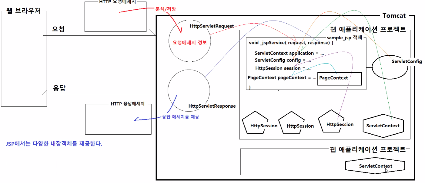 - JSP에서는 내부에 이미 ServletContext객체가 들어있기 때문에 객체를 만들 필요 없이