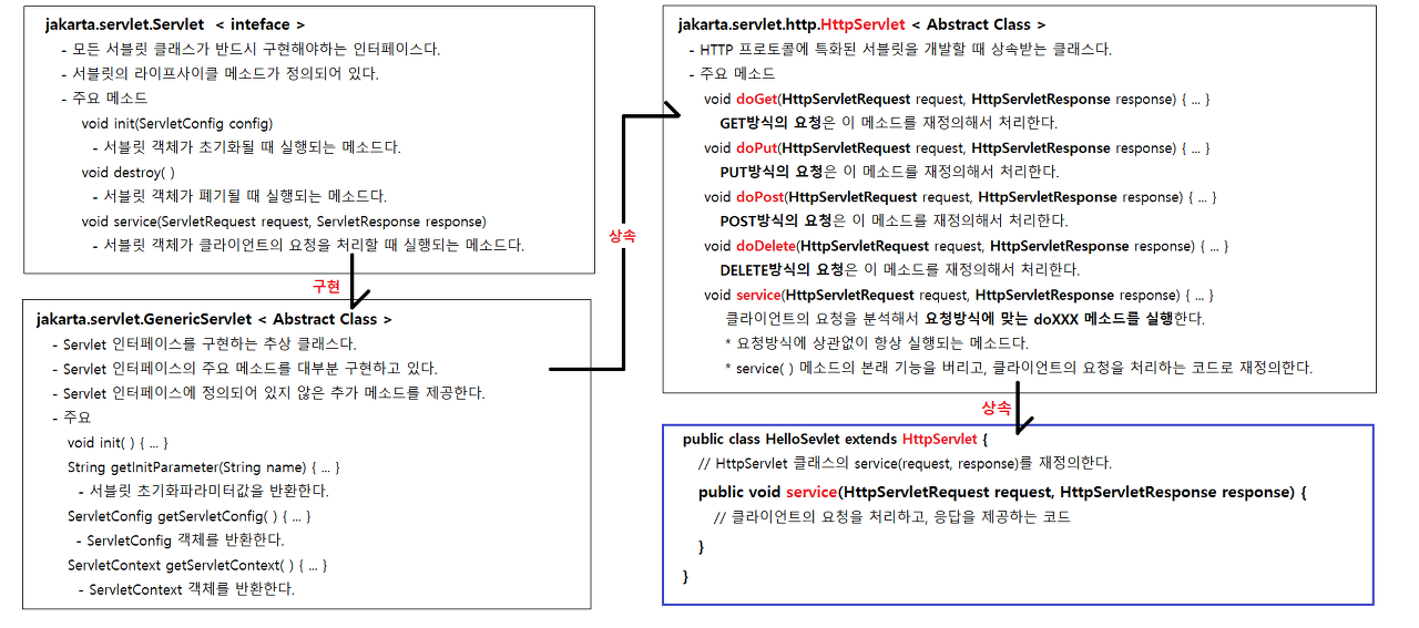 - HttpServlet은 제너릭서블릿을 상속받아 만든 것임.