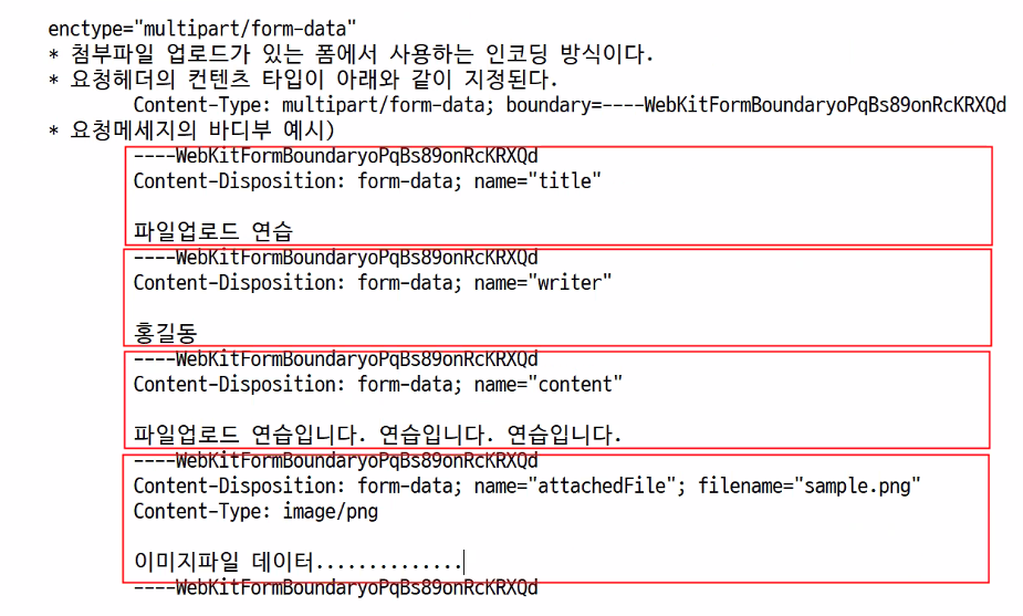* 첨부파일 업로드가 있는 폼에서 사용하는 인코딩 방식이다.