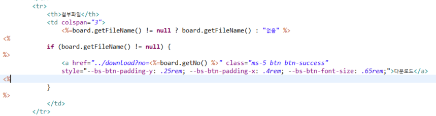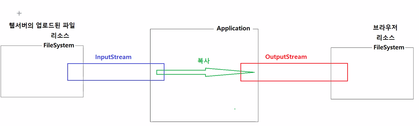 - 첨부파일 다운로드 처리 : 서버의 지정된 폴더에 저장된 파일을 읽어서 브라우저와 연결된 출력스트림으로 출력하는 것이다.