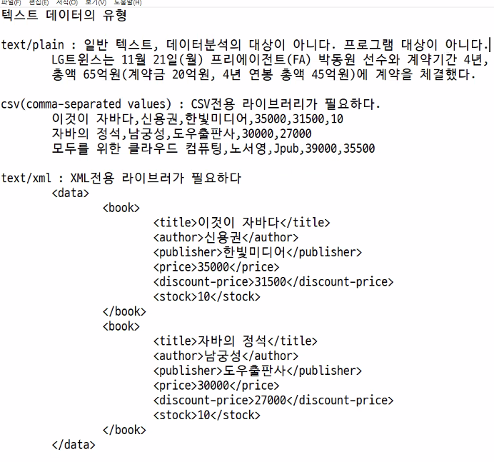 텍스트 데이터의 유형