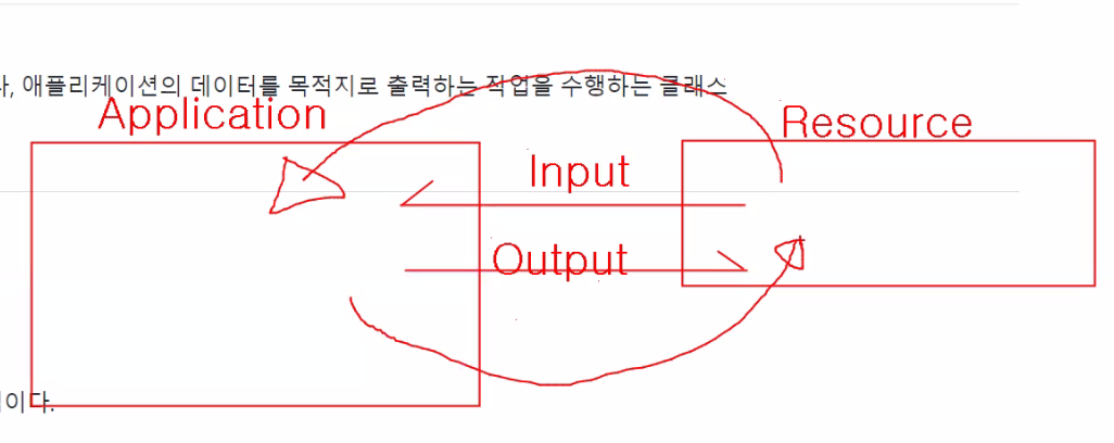 - 애플리케이션에서 리소스를 읽어오거나, 애플리케이션의 데이터를 목적지로 출력하는 작업을 수행하는 클래스
