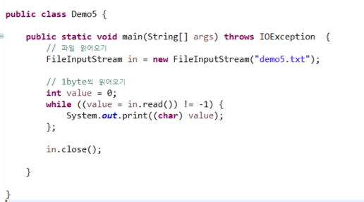 - 데이터를 읽을 때 한 바이트(1byte=8bit)씩 읽어오는 객체