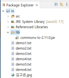 Apache.org에서 Commons프로젝트에서 IO라이브러리(commons-io-2.11.0-bin.zip)을 다운로드 받고 그 안의
