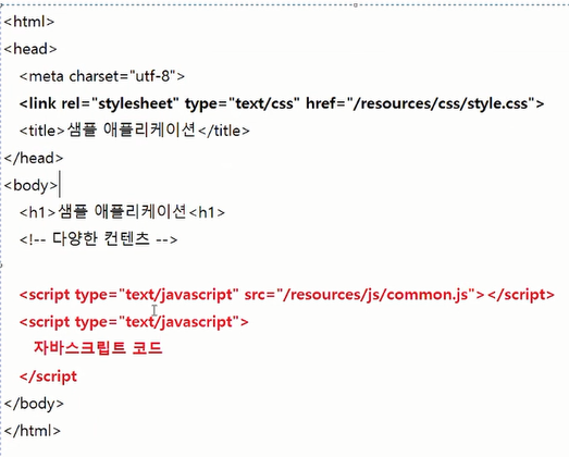 - 일반적으로 바디 타입의 맨 끝 부분에 작성한다. html을 먼저 실행시키고 html 마지막 부분에 작성되어야 랜더링속도가 느려지지 않는다. css의 경우, html을 랜더링하는 엔진과 css을 랜더링하는 엔진이 동시에 작동되기 때문에 css를 먼저 작성한다.