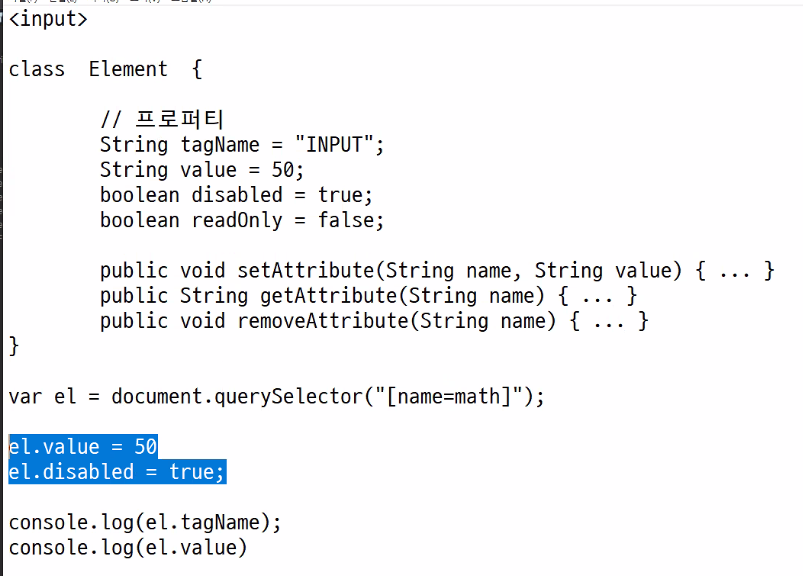 value 속성을 가지는 엘리먼트 - 모든 input 태그, option태그는 value속성을 가진다.