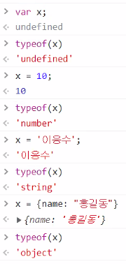 - 동적데이터타입을 지원한다. (데이터타입이 가변적이다. 변수의 값이 담길 때 타입이 결정된다.)