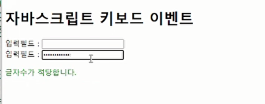 키가 입력될때마다 발생시킬 수 있는 이벤트는 onkeyup이다. (글자수 제한이 있을 때 사용한다.)