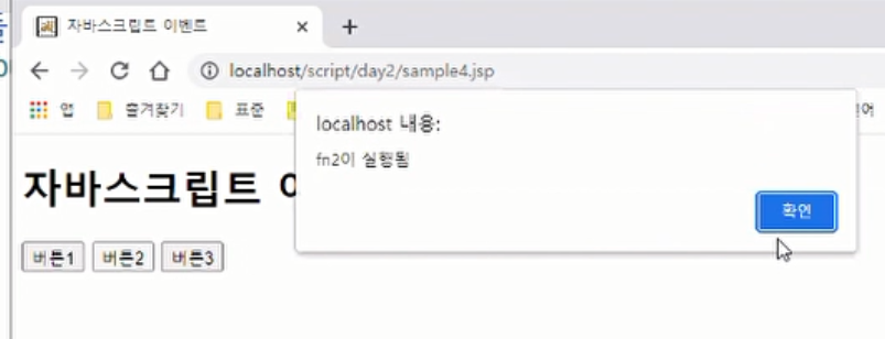 }<html> <head> <meta charset="UTF-8"> <title>자바스크립트 이벤트</title> </head> <body> <h1>자바스크립트 이벤트</h1> <div> <!-- 이벤트소스인 button 태그에서 이벤트핸들러 함수 바인딩하기 --> <button id="btn-1" onclick="fn1();">버튼1</button> <button id="btn-2">버튼2</button> <button id="btn-3">버튼3</button> </div> <script type="text/javascript"> // 이벤트 핸들러(이벤트 리스너) 함수다. function fn1() { alert("fn1이 실행됨"); } // 이벤트 핸들러(이벤트 리스너) 함수다. function fn2() { alert("fn2이 실행됨"); } // 이벤트 핸들러(이벤트 리스너) 함수다. function fn3() { alert("fn3이 실행됨"); } var btn2 = document.querySelector("#btn-2"); btn2.onclick = fn2; var btn3 = document.getElementById("btn-3"); btn3.addEventListener('click', fn3); // 이벤트 발생을 감지하는 걸 리스너라고 하는데 이벤트 핸들러와 같은 말 </script> </body> </html>var btn2 = document.querySelector("#btn-2");