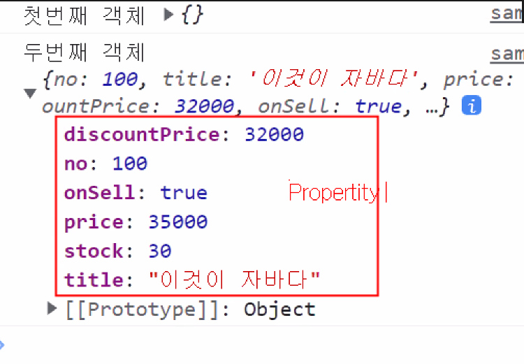 obj["title"] = "이것이 자바다." // obj -> {no:100, title:"이것이 자바다"}이 되었다.