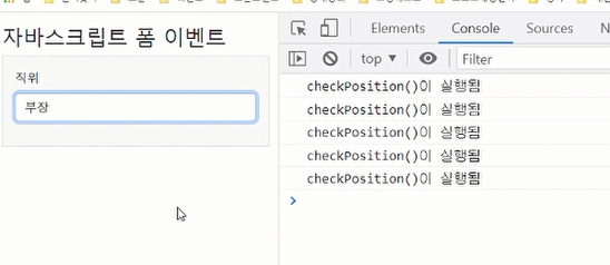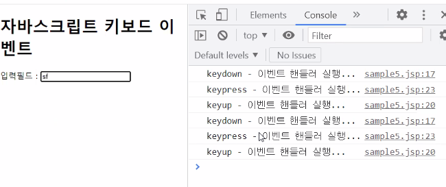이 이벤트가 발생했을 때 사용자가 입력한 값이 화면에 표시된다.
