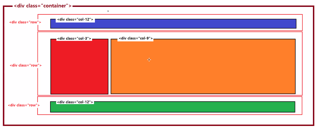 * 컨테이너 : 지정된 기기 또는 뷰포트 내에서 콘텐츠를 포함하고 채우고 정렬하는 Bootstrap의 기본 컴포넌트이다.