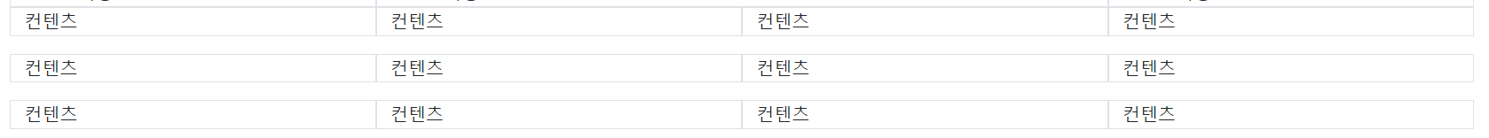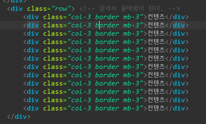 4개씩 <div> 태그로 감싸주지 않아도 12칸이 차면 줄바꿈이 된다.