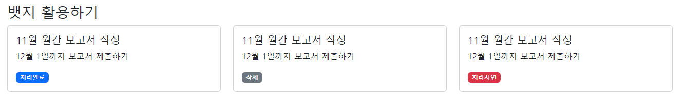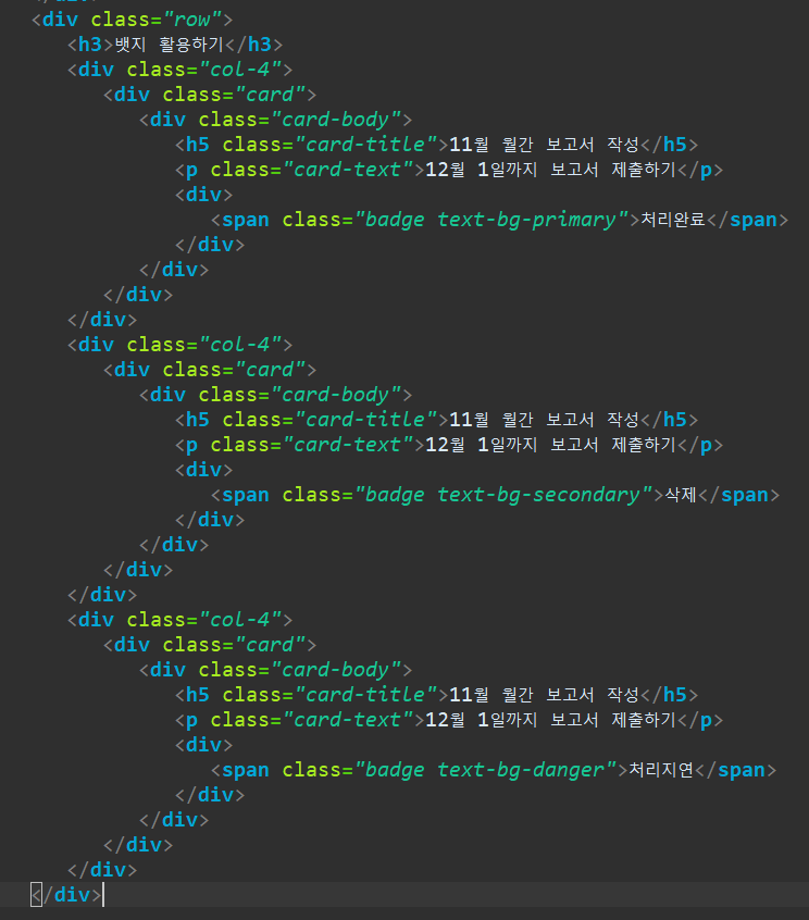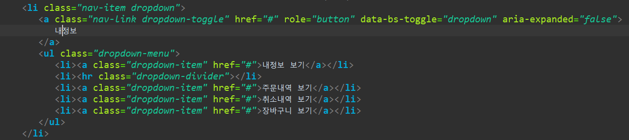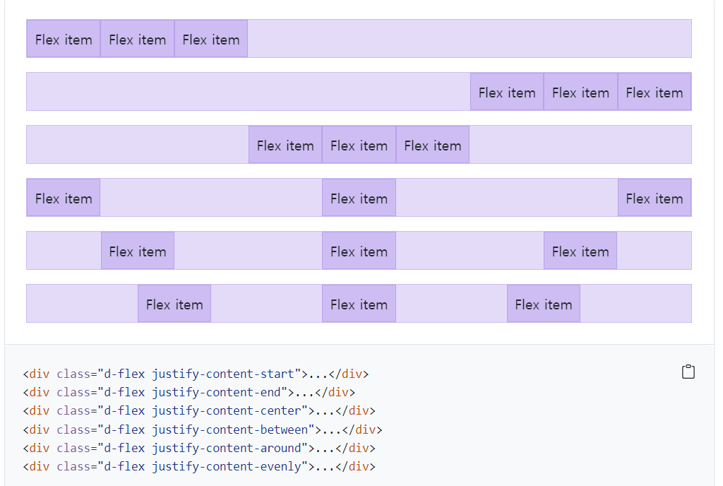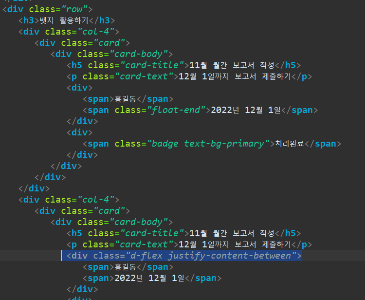 <div class="d-flex justify-content-between"> -- 글씨가 양쪽으로 등간격으로 떨어지도록 한다.