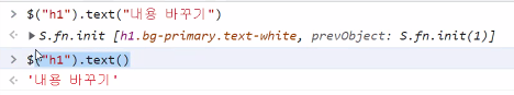 - 메소드체이닝을 지원한다. (한번 선택한 엘리먼트에 대해서 .을 연결해서 이어서 쓰는 것을 통해 여러번의 조작작업을 할 수 있다.)