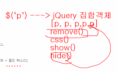 * jquery집합객체 = 검색된 엘리먼트 + 다양한 메소드