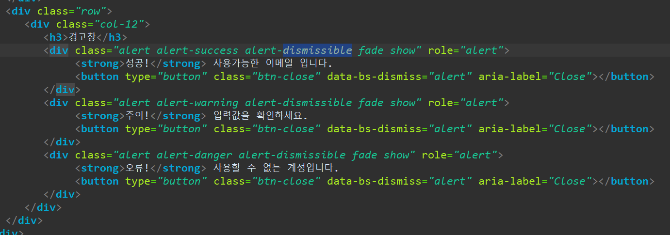 dismissible은 닫기 기능을 제공한다.