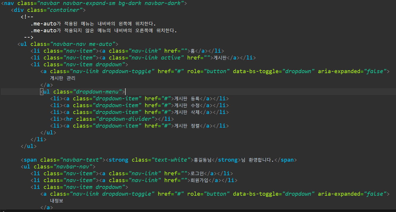 .me-auto가 적용된 메뉴는 내비바의 왼쪽에 위치하고,