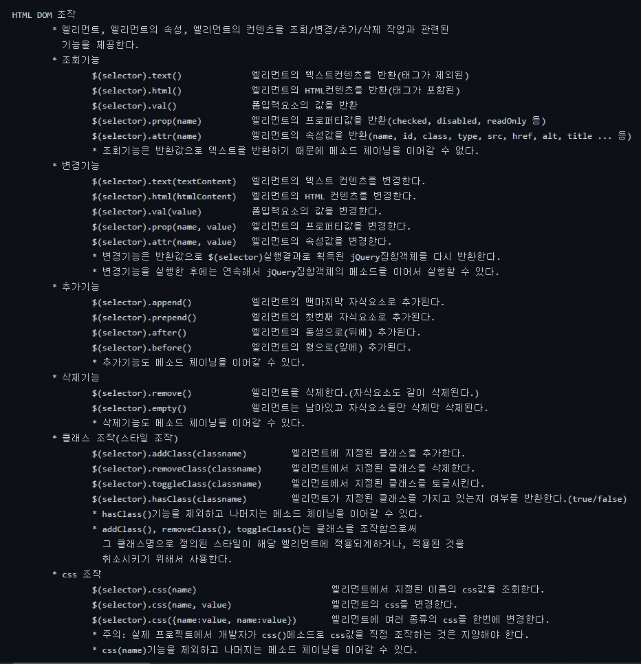 텍스트컨텐츠, html 컨텐츠, 폼입력값, 속성, 프로퍼티, 스타일 조회/변경 메소드
