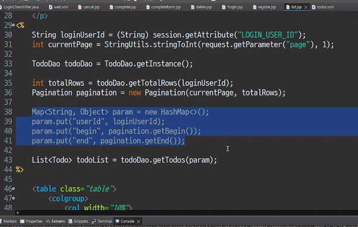 list.jsp에서도 getToalRows를 loginUserId로 검색하였다.