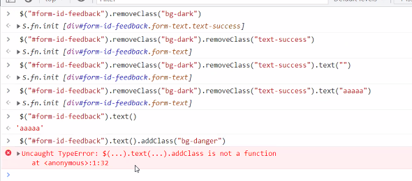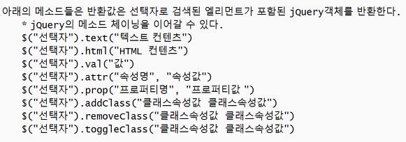 * 제이쿼리의 메소드 체이닝을 이어갈 수 없다.