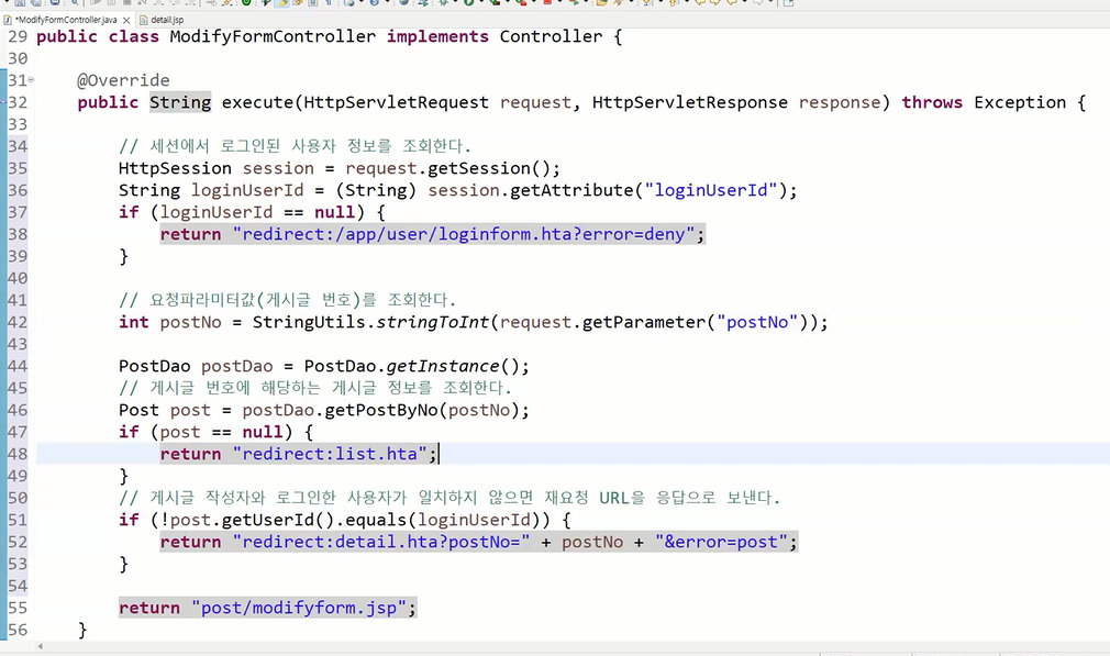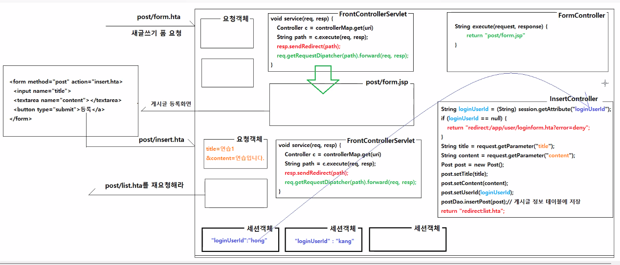 만약 return으로 "redirect:list.hta"가 아닌 "post/list.jsp"가 온다면 문제가 발생한다.