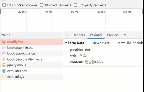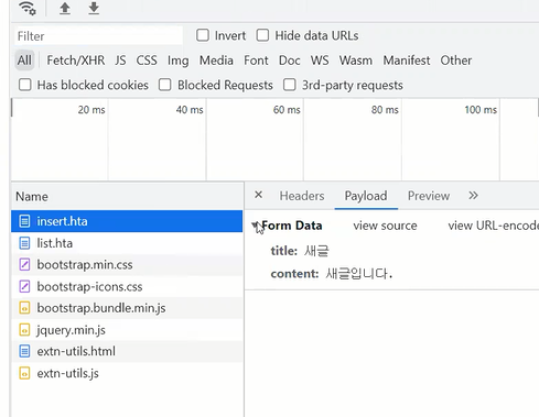 검사창을 눌러보면 네트워크에 전달되는게 다르다.