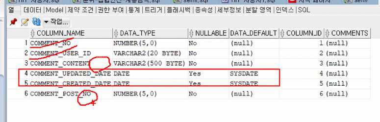 기본값이 있는건 넣을 필요 없다. null을 허용하지 않는 것 4개 중에 comment_no는 시퀀스로 할거니까 신경쓸 필요 없고, comment_user_id는 세션에서 로그인한 사용자정보를 가져오면 된다.