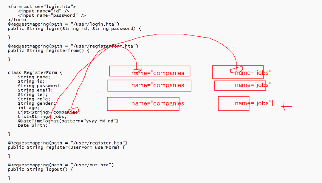 - 스프링을 하면 아래와 같이 controller 하나로 가능하다!