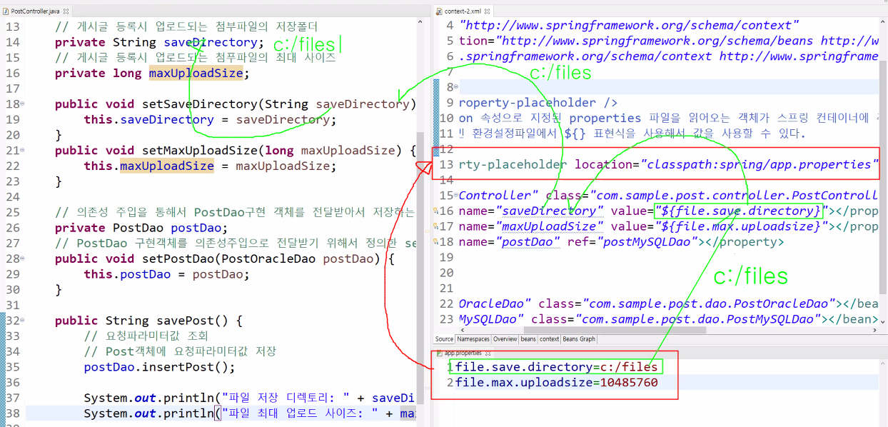 ** 주의 : value="${file.save.directory}" 중괄호 사이에 빈공간이 있으면 안되고 중괄호 뒤에도 띄어쓰기가 있으면 안된다.