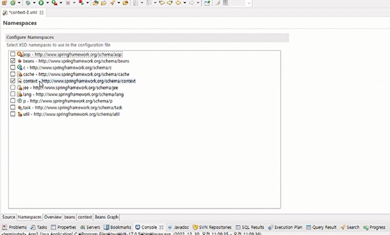 Namespaces에서 context를 체크하면 추가적으로 사용할 수 있는 태그가 늘어난다.