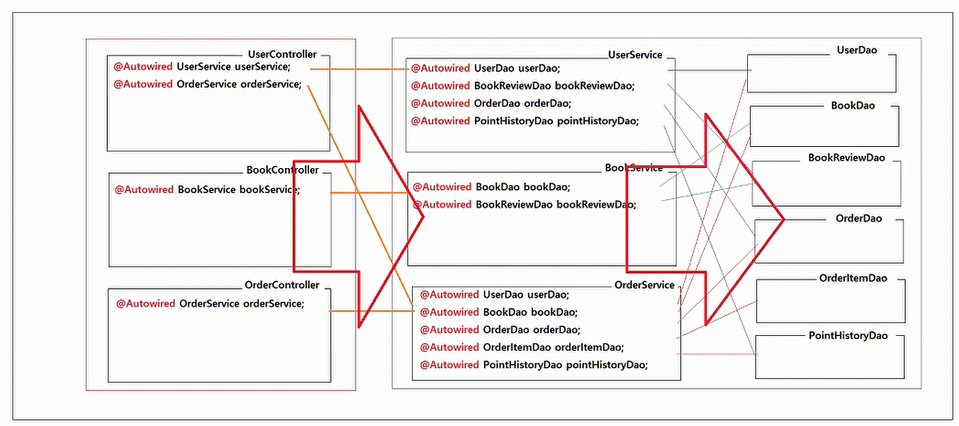 public UserService(UserDao userDao, PointHistoryDao pointHistoryDao) { // UserDao, PointHistoryDao 타입의 객체에 주입해야 한다.