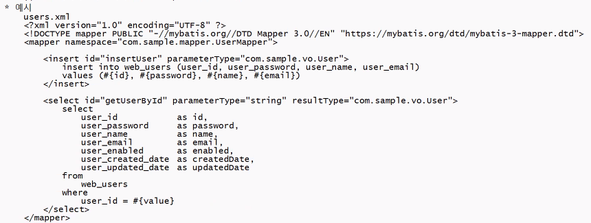 * Mapper 인터페이스의 전체이름을 namespace로 설정한다. (어떤 Mapper인터페이스와 관련있는지를 식별한다.)