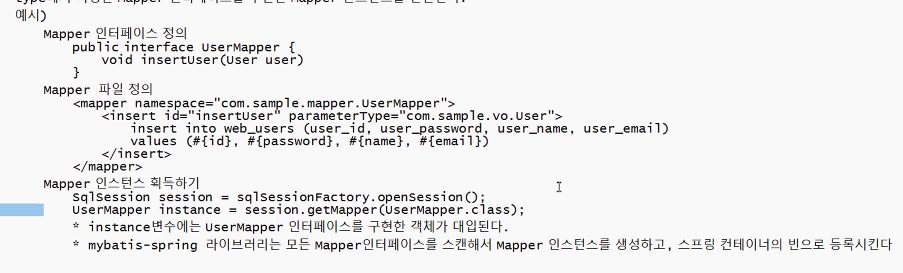 - JDBC에서는 DAO를 생성하는게 목적이었다면, MyBatis는 Mapper 인스턴스를 생성하는게 목적이다.