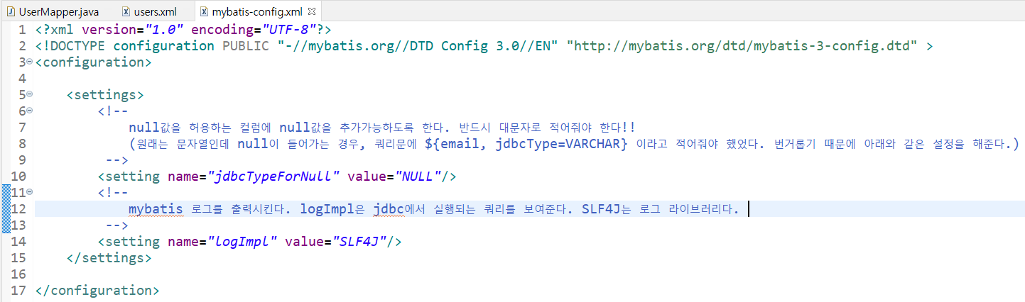 </mapper>4. mybatis-config.xml로 mybatis 환경설정 파일을 작성한다.