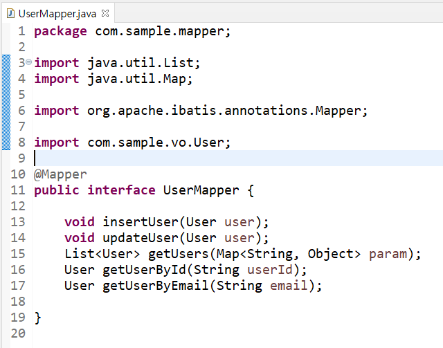 <insert id="insertUser" parameterType="com.sample.vo.User">