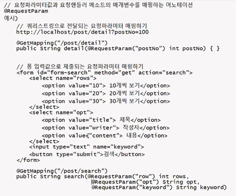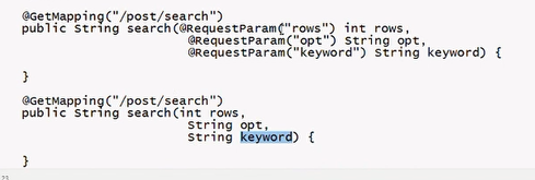 요청파라미터이름과 변수명이 같을 경우, @RequestParam은 생략해도 된다.