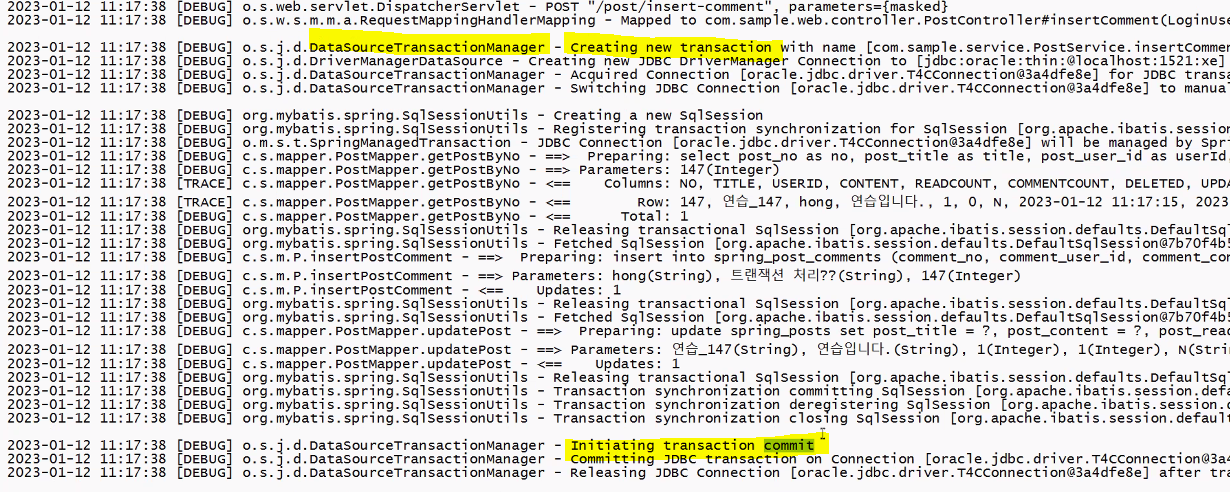 - 선언적 트랜잭션처리가 적용된 메소드가 실행될 때 트랜잭션 매니저가 같이 실행된다.