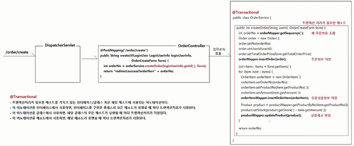 - 이 어노테이션을 메소드에서 사용하면, 해당 메소드가 실행될 때마다 트랜잭션처리가 지원된다.