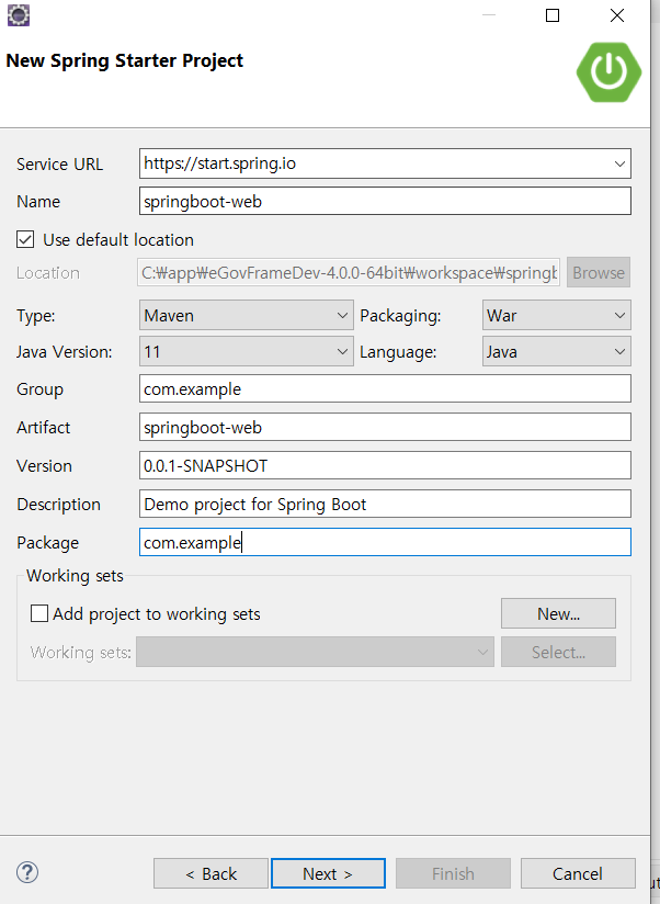 new > project > spring boot > Spring Starter Project