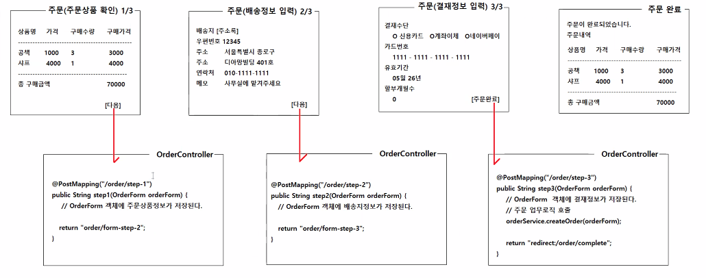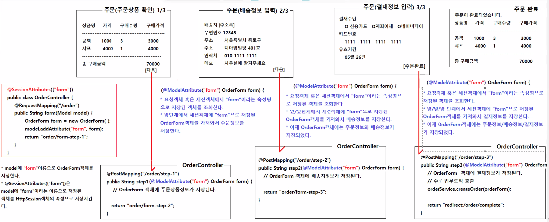 public String step1(@ModelAttribute("form") OrderForm form) { /// @ModelAttribute("form")이 없으면 OrderForm 객체가 새로 만들어질 것이다.