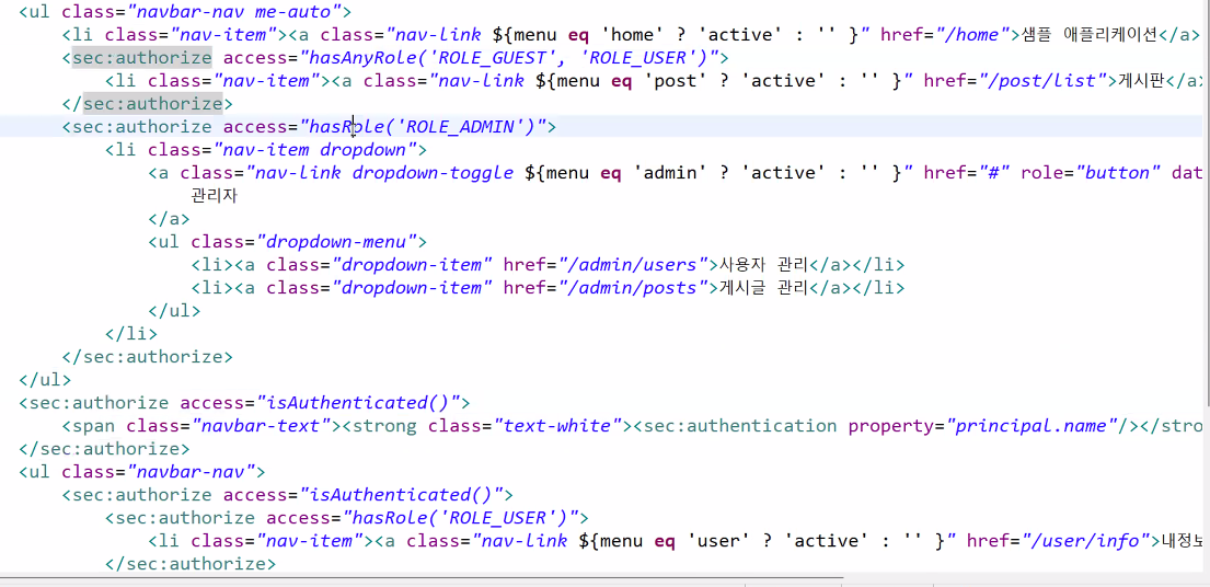 3. 로그인한 사용자의 보유 권한에 따라서 메뉴를 다르게 표시하기
